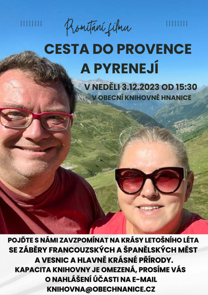 !!! Kapacita knihovny je omezená, prosíme vás o předchozí nahlášení účasti na e-mail knihovna@obechnanice.cz !!!