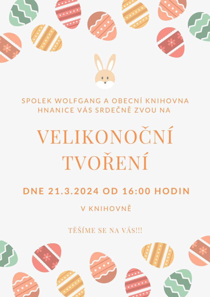 Spolek Wolfgang a Obecní knihovna Hnanice Vás srdečně zvou na "Velikonoční tvoření", které se koná ve čtvrtek 21.3.2024 od 16:00 hodin v knihovně.